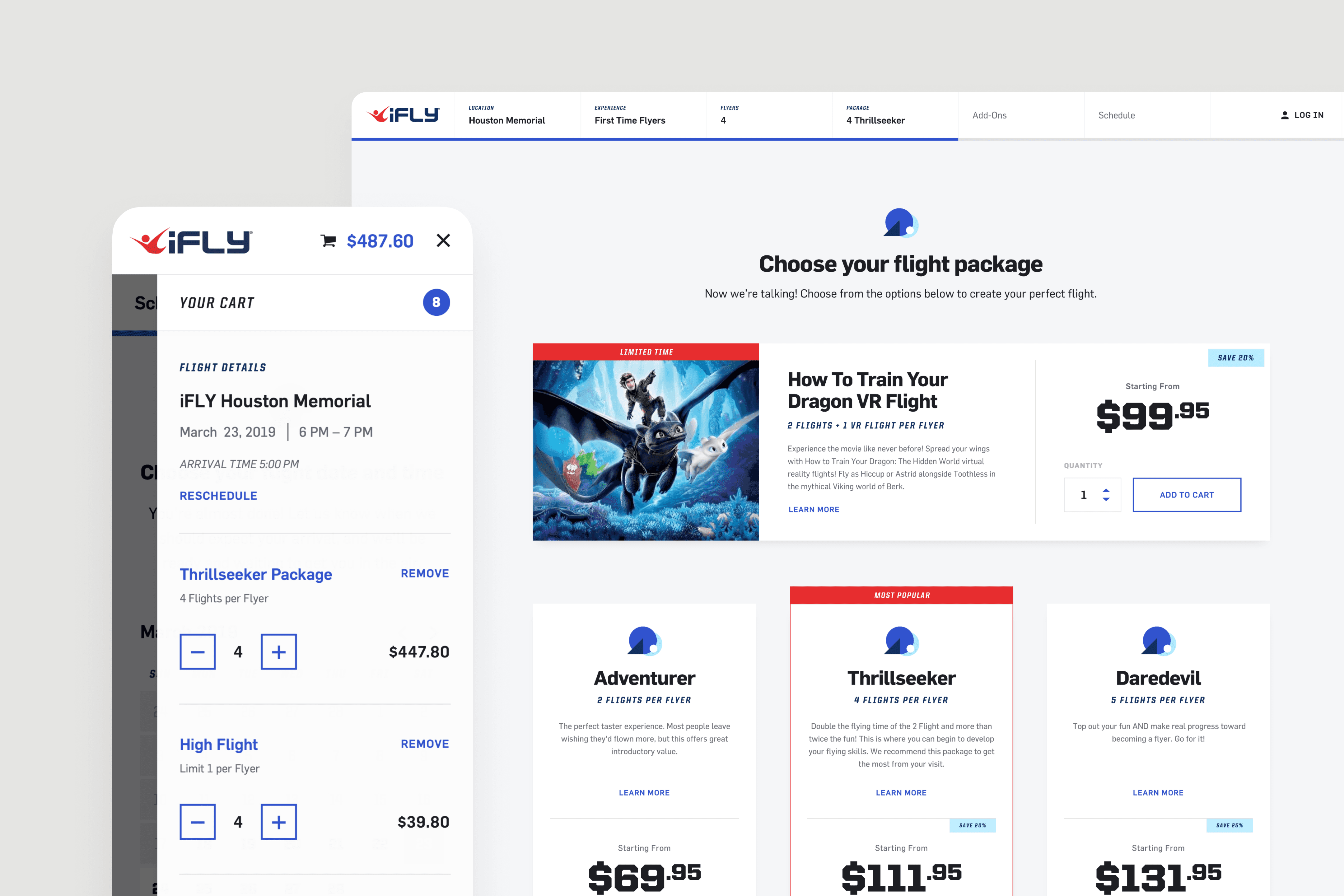iFLY's fragmented booking system created 20+ minute delays for group bookings and a 75% checkout abandonment rate. I redesigned the booking experience across web, mobile, and kiosks, clarifying pricing, digitizing waivers, and streamlining group checkout. The unified system increased online conversion by 23% and reduced group check-in time by 70%.